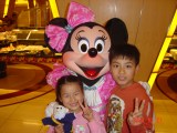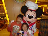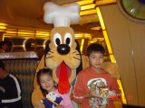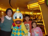 このレストランはミッキー、ミニー、ドナルド、デイジー、プルートが各テーブルを巡回していて家族との写真が撮り放題なのでディズニー好きの人にはお勧めなレストランなのです。ホテルに泊まらない人は並ぶしかないというのがつらいところですが、朝早く来てお父さんだけが並ぶとかそんな工夫をするしかないでしょうね。うちは近いから簡単に並べるので恵まれています。 |