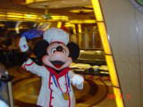 )途中で2回ほどダンスタイム(歌に合わせて手拍子・ナプキンを回すなど)があり、乗り乗りのミッキーが走ってました!画像を確認したら一番嬉しそうなのは・・・・何故か私でした(^-^; |