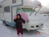 子供達は最初はATOMの後ろで下の駐車場めがけて滑っていましたが、雪まみれで靴の中など冷たいということでゲレンデに行く事にしました。下の駐車場には大きなキャンピングカーとバスコンとトレーラーが1台ずつ停まっていました。