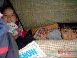 ATOMの中でレンタルしてきたDVDを見てから、年越しまで起きているか迷いましたが、今日は疲れたので寝ることにしました。子供達はやはり疲れからかすぐに寝てしまいました。ATOM-405はリアに2段ベッドがありますが、FFヒーターの噴出し口が前にしかないためか、ベッドは結構寒く、また結露がひどいこともあり今回はダイネットのお座敷で2名、バンクベッドに2名で寝ることにしました。う〜ん、これならばBタイプのほうが広いし過ごしやすいのに・・・という感じです。リアの2段ベッドは今回は完全に荷物置き場です。また、車内はスキーウェアーや手袋などを吊り下げているのでいつにも増して狭い空間となっています。まぁこれはスキーなのでやむなしです。ちなみにシートの下もスキーブーツを乾燥しているのですごい状態です。