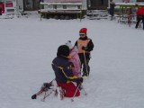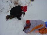 ソリで遊んでいる子供達を残してスキー場をぶらぶらと見てきました。お土産品なども見てから戻って来ると、ソリ遊びはやめて雪を集めてなにやら作っています。どうやら寝転んで入るカマクラを作っているようです。