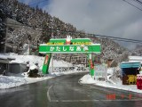 では、出発〜!!来たときよりも道路には雪が積もっています。事故など起こしては洒落にならないので、慎重にDレンジと2速を使いながら走ります。途中で除雪車を追い越しながら白根温泉に向かいました。あまり車がいなくて、しかも進行方向の先にある金精峠というところが冬期通行止めという案内が出ているので、雪がすごかったりしたらどうしようと少し不安を感じつつの走行でした。