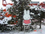 ATOMに戻ってソリを置き、最後にお土産を買ってから出発です。かたしな高原の入口ももちろんミッフィ−です。