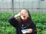 いよいよイチゴ狩りです。以前行った場所では畝をまたぐな、あれはダメこれもダメと結構うるさかったので少し警戒モードで練乳が入ったへたを入れる小さなトレーを受け取ります。ガタガタ言われても畝ぐらい跨いでやるかんね!という心境で臨んでいます。とにかく食べまくるべしっべしっべしっ!・・・・・ところがここでは全くおおらかで何の注意もされませんでした。畝を跨いでも何も言われませんし(もちろん畝もイチゴも踏まないことは当たり前ですが)、「結局練乳が無くなったら食べられなくなるんだよな〜」という想いについても練乳のお代わりをドボドボッといただいちゃって「あらら〜」とこちらが拍子抜けするぐらいの状況でした。いやぁ〜警戒していたのが恥ずかしいです。(/o\)。「とちおとめ」と「さちのか」の2種類のイチゴが植わっているとの情報も耳にしたので食べ比べて見ましたが、やはり味が違っていました。とちおとめのほうがおいしかったです。子供達も沢山食べていました。さぁ元は取れたのでしょうか!?家族4人で合計5,200円分もイチゴを食べるというのは並大抵の量では無理な話しですが、家族全員で「食べて食べて食べて食べまくりました。いやぁ結構頑張りました。その結果として「当分イチゴは食べなくても良い」と子供達は言っておりました(でも翌日の給食でイチゴが出て・・・しっかりと食べたそうです。(^o^))