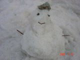 寒さに耐え切れず奥さんが戻ってきました。キッズタウンももうすぐ終わりということで子供達はソフトクリームを食べたあとでゲレンデの隅で雪遊びをしているそうです。そこで私が替わって見に行きました。2人で雪を集めて何かを作ろうとしているようなので恒例の雪だるまをお願いしました。しかしながらここの雪は細か い氷でできているためなのかうまく丸くならないようです。結局まなが小さな雪だるま、わたるが少し大きめの雪だるまを苦労しながら作ったので写真を撮っておきました。