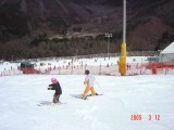 リフトを降りてビデオカメラを回しながら子供たちの後ろを滑り降りましたが、ボーゲンですら上手くブレーキがかかりません・・・・。こういった雪は難しいのですね。わたるもとても滑りにくいと言っています。まなだけはスイスイと平気で滑っています。何本か滑りましたがとても足が疲れました。一度ビデオでの撮影をやめてちゃんと滑ってみましたが足がばらばらでこけそうになりました。へたくそが輪をかけて下手になってしまう感じですね。