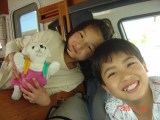 出発前にわたるがのどが渇いたということでカルピスを用意したら、ダイネットで勝手にお替わりをしていました。挙句の果てに、信号待ちで道が混んでいる箇所で「気持ち悪い・・・」と言い出しました。このまま吐かれでもしたら堪らないので、車から降ろして渋滞の先を歩かせました。ATOMの中から見ていると道路の端にしゃがんだりしているので、吐きそうなのでしょう。カルピスの飲み過ぎに違いありません。結局信号の先のコンビニにATOMを停めて様子見・・・・と思ったらわたるはその先にあった公園を発見し、まなと遊びに行ってしまいました(-_-;)