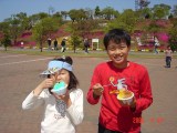 カキ氷の後は少し広場で遊びます。ボールとおもちゃを買わされて(?)しまいました。いやぁ〜それにしてもいい天気です。
