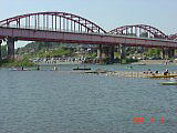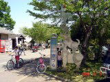キャリアから自転車を下ろして道の駅に行ってみます。道の駅は車がごった返していました。自転車を停めて道の駅の農産物直売所に入りましたが、まながペダルで脚を打って、元からかさぶたになっていた部分から出血してしまいましたので、ATOMにUターンです。バンドエイドを貼って今度は歩いて川原を探検です。川原は沢山の人がバーベキューなどをしていました。どんどん人は増えていっています。