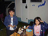ではバーベキューです・・・・でも、寒いので焼けたものを車内に運んで車内での食事となりました。子供達に先に食べさせておいて、残ったものを親が食べます。わたるがあまり食べず結構残ってしまいました。