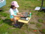 ではATOMに戻って朝食の準備です。子供達は川へ遊びに行きました。紙コップと空のペットボトルを持ってめだかより小さな小魚を獲っているようです。