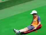 それでは出発です。帰りに大宮町で芝ソリをしていきます。芝ソリゲレンデでわたるは1回滑ったら、疲れたので休むということになりました。どうも昨日から様子が変です。どうやらぜんそくが出始めたようです。私はためしに2回滑りました。少し人工芝のプラスチックの臭いが鼻につきますね。結局まなも3回ほど滑って終了です。無料でこんな施設が使えるなんてありがたいですね。