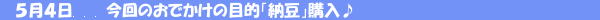 食後はまなの誕生プレゼントを探しましたが、希望の品は売り切れで見つかりませんでした。では、納豆を買って帰ります。
