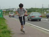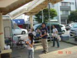 を片付けておく。13時過ぎに「うずめ」で昼食という話であったが、わたるがキックボードとともにどこかに行ってしまって片付けが止まってしまった。その他のものを片付けて帰りを待っていると、ずぶぬれで帰ってきた。海で遊んでびしょびしょになったそうだ。着替えを出していたら、しまじろうさんがシャワーを浴びさせて下さった。こういうシーンでシャワーは便利であることを知った。しまじろうさんありがとうございました。助かりました。濡れた服をバケツに突っ込んでトイレに入れて、キックボードをなんとか押し込んで、さぁそろそろ出発だな。朝から頭が痛くて少し気分がすぐれないので、とりあえずエンジンをかけクーラーをつけて車内を冷やす。たのけよ号、ダダ号、FUMI号、hanaoka号に続いて出発である・・と、公園を出た瞬間にhanaoka号のリアのドアが開いたではないか!?慌ててmikumamaさんの携帯を鳴らしたがつながらなかった。その後は開かなかったので気づいて閉められたのだろうなぁ、しかし驚いた〜。