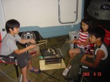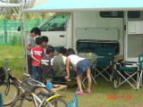 またしても子供たちはチョコワで簡単に食事を済ませ、その間に車内を片付けておく。食後、子供たちは宿題。宿題は思ったよりもあっさりと終わり、子供たちはすぐに遊びに行った。しばらくすると遊び道具がいるというのでキックボードや、バットやボールなど出すと子供たちはまたそれぞれで遊び出した。