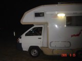 結局今回もナビのおかげで何とか無事にたどりつくことができた。飯岡みなと公園に着いてみると、道路をはさんで駐車場と公園に分かれている。駐車場には巨大なダンプが2台と数台の乗用車が停まっている。う〜ん、でも何か違う。公園のどこかにもっと自由に駐車できるスペースがあるように思われる・・・・。こんなきれいな場所で多くのキャンピングカーがP泊をするとは思えない。しかし、公園では男女入り混じった数名の若者がこんな時間にも関わらず、けたたましい声を上げながら打ち上げ花火をしている。迂闊に近づいてもめごとになっても鬱陶しいので、今日はこの駐車場で寝ることにした。ATOMにマルチシェードを付けているとパトカーが巡回してきた。よ〜し、そのまま花火をしている若者達を追っ払っておいておくれと心でつぶやきながら、おやすみなさ〜い。