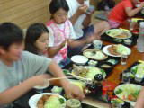 のであった。しかし、せっかく用意した豚しゃぶなので、またしても無理やりおすそ分け攻撃で、子供たちに配ってもらった。お酒を入れている効果は自分ではよく判らなかったが、ほうれん草は結構美味しかった。豚肉とほうれん草とポン酢は合うし身体にも良いというのが結論かな。しかし、今後のバーベキューは魚中心でも全くOKのような気がした。まなはアジがとてもおいしかったようであった。しょうまくんがアジを焼くのをずっと手伝ってくれたので助かった。わたるは2日間ずっとしょうまくんと遊んでもらっていた。また、男の子同士ということでけいたくんともあそんでもらっていたようだ。まなはたくまくんのほうだったようだが、mikuちゃんに遊んでもらっていたようだ。ありがとうね〜皆さん〜。