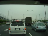 首都高速に乗ると葛西で事故。渋滞にはまっているときに、ふと横を見ると隣は牛だった(^o^) |